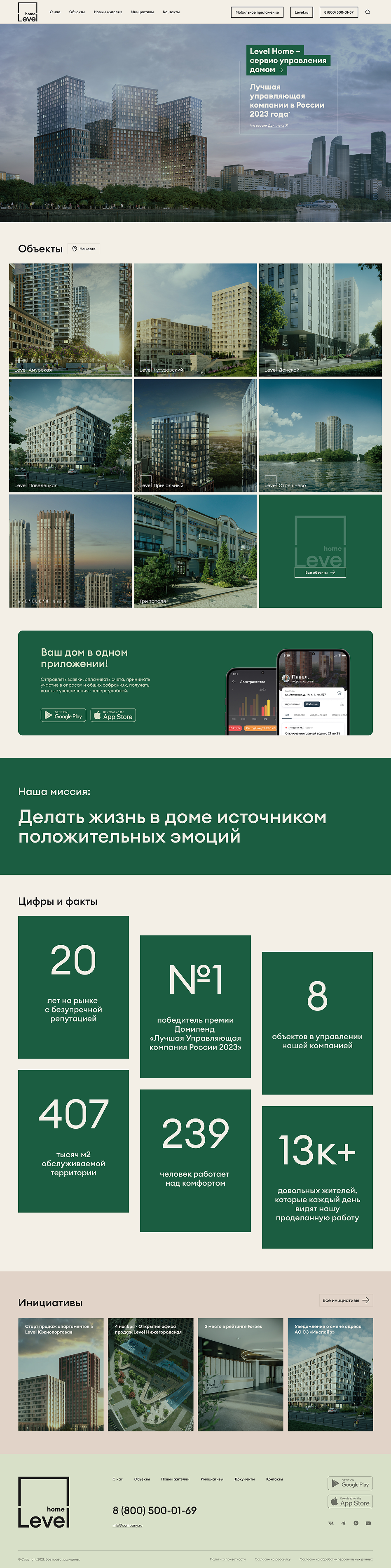 Разработали имиджевый сайт для Level home - сервиса управления домом и лучшей управляющей компании 2023 года в России по версии Домиленд.